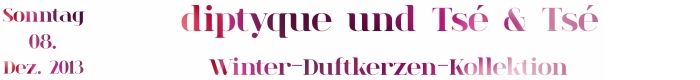 Jedes Jahr präsentiert der weltweit bekannte Pariser Parfumhersteller diptyque, der für seine raffinierte und edle Kollektion unverwechselbarer Düfte verehrt wird (die für mich wie olfaktorische Ansichtskarten sind und von der vollkommenen Schönheit der Natur und außergewöhnlichen Reisen erzählen) eine spezielle für die Winterzeit und deren besonderen Festtage kreierte Duftkerzen-Kollektion. Auch dieses Jahr entzündet das Parfumhaus, das einst mit luxuriösen Duftkerzen berühmt geworden ist, die Leidenschaft des diesjährigen Weihnachtsfests mit einer limitierten Edition drei neuer Duftkerzen.